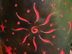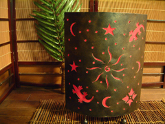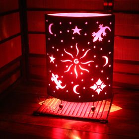 当店の人気モチーフ、太陽をあしらった置き型ランプです。