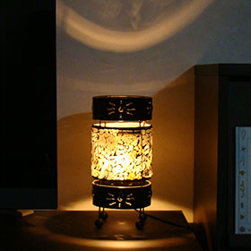 モザイク部分のこもった灯りが印象的なアジアンランプです。 当店ではおなじみのアイアン部分の太陽の模様からもれる影と 素敵なコラボです。 モダンアジアンな灯りをお楽しみ下さい。